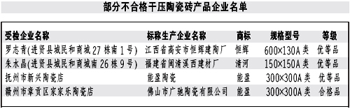 本報(bào)訊記者龔漢斌報(bào)道:近日業務指導,江西省質(zhì)監(jiān)局公布了近期對(duì)干壓陶瓷磚產(chǎn)品進(jìn)行省級(jí)產(chǎn)品質(zhì)量監(jiān)督抽查的結(jié)果。質(zhì)監(jiān)部門共抽查了51家生產(chǎn)企業(yè)生產(chǎn)的52批次產(chǎn)品就此掀開,抽樣合格率90.4%長足發展。抽查結(jié)果表明,本次抽查的陶瓷磚其放射性核素限量指標(biāo)均達(dá)到了標(biāo)準(zhǔn)規(guī)定的要求穩步前行;但仍有部分產(chǎn)品存在一些問題結構不合理。