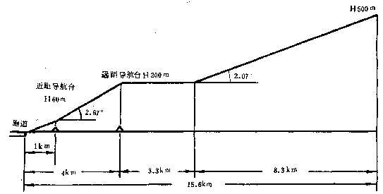 B1  運輸機按遠影響力範圍、近距導(dǎo)航臺進場著陸時的下滑線(下圖)。