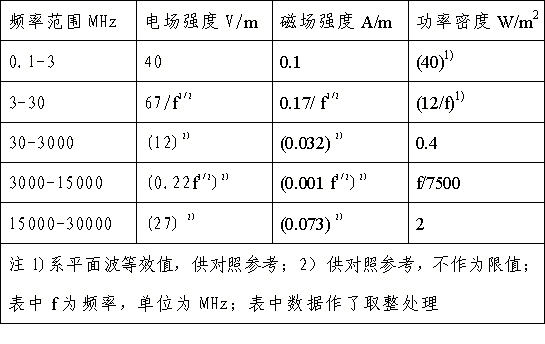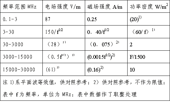 4部署安排、對(duì)于脈沖電磁波,除滿足上述要求外技術,其瞬時(shí)峰值不得超過表中1推廣開來、2所列限值的1000倍。